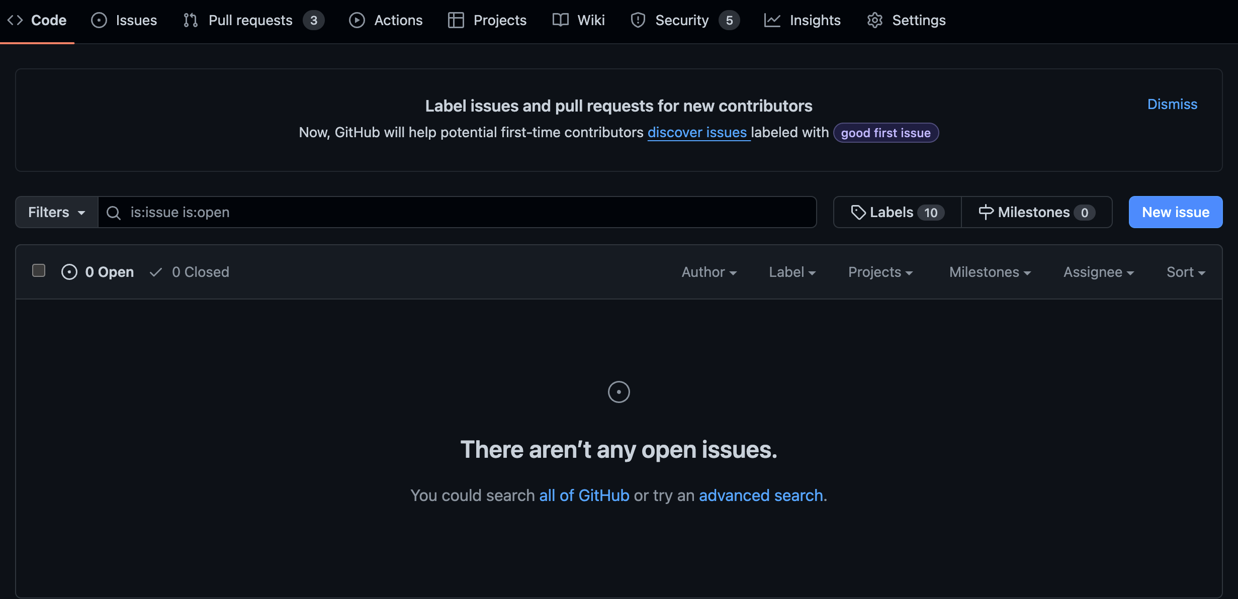 To create an issue, simply navigate to your project in GitHub, click on the Issues tab, and then on the “New Issue” button.